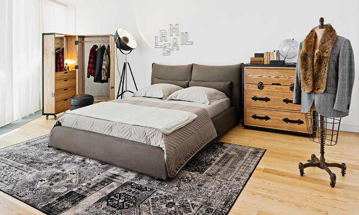 Um tema amplamente desenvolvido pela Area. Um contexto industrial mas com peças mais depuradas usando tecidos confortáveis, e com um resultado de contrastes, como a mistura do ferro e da madeira, e que resultam num ambiente equilibrado.